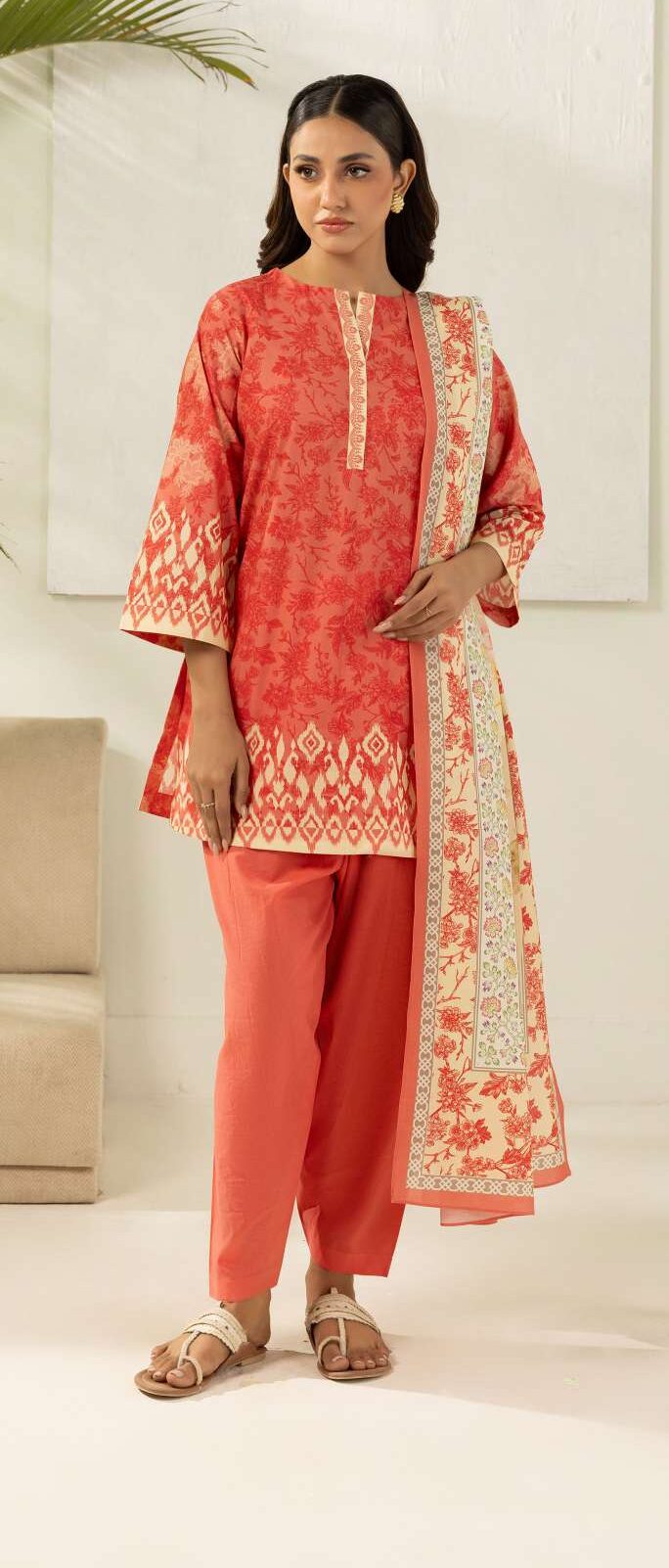 ZELLBURY ka yeh coral red digital printed slub lawn suit un khawateen ke liye design kiya gaya hai jo style aur comfort dono ko importance deti hain. Is 3-piece outfit mein premium quality slub lawn shirt shamil hai jo halki, breathable aur garmiyon ke liye bohat comfortable hai. Shirt par intricate digital print aur fine detailing isay ek sophisticated aur eye-catching look deti hai.