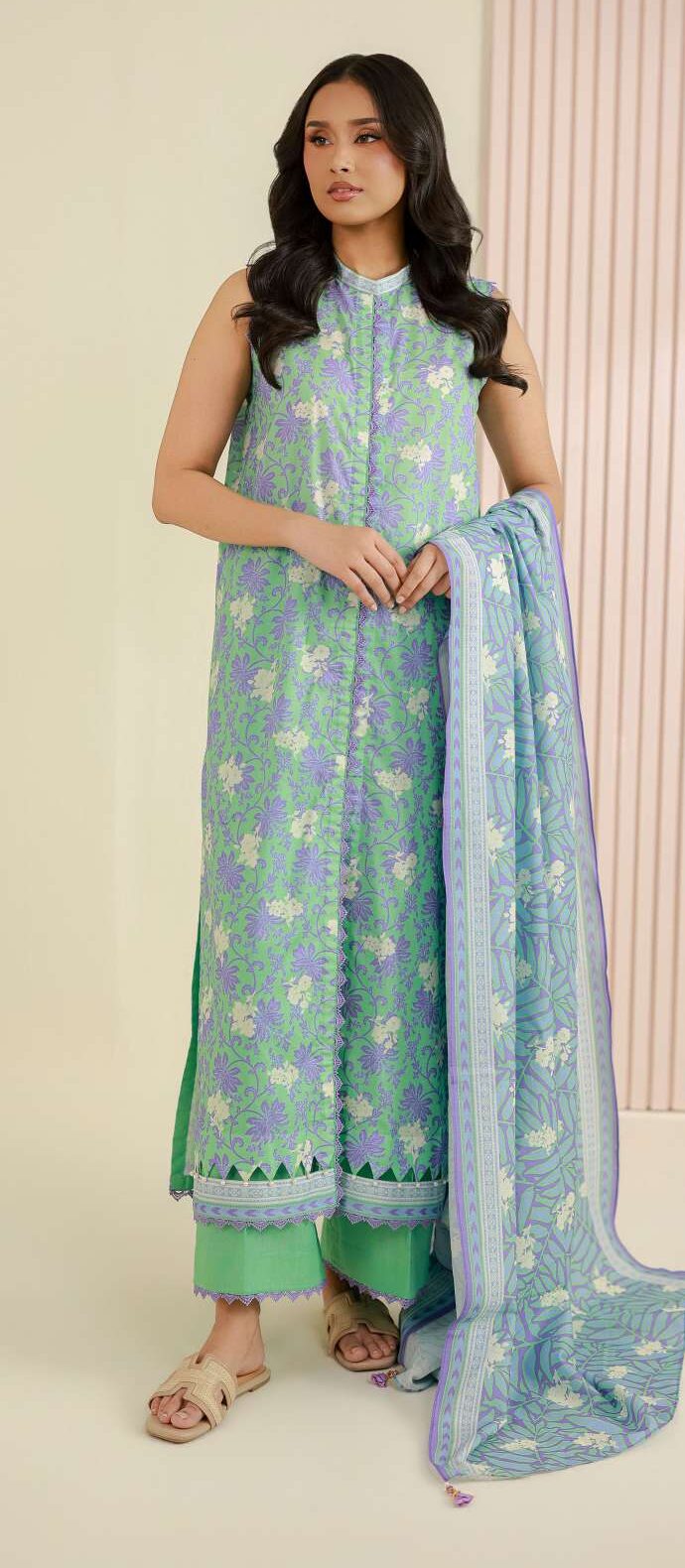 ZELLBURY ka yeh khubsurat 3 piece lawn suit un logon ke liye perfect hai jo light aur refreshing colors pasand kartay hain. Is outfit mein mint green base par lavender floral digital print diya gaya hai jo ek soft aur soothing look create karta hai. Shirt ka sleeveless aur flowy design isay modern aur trendy banata hai, jabke subtle detailing iski elegance ko barhati hai.