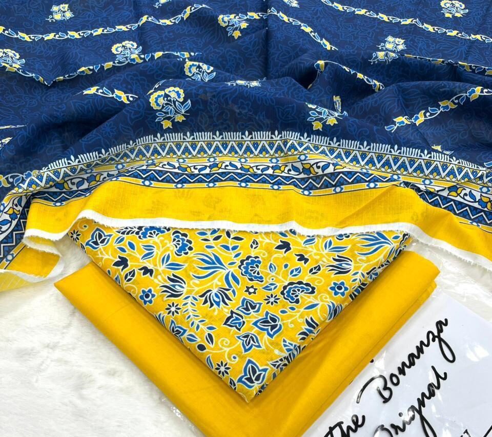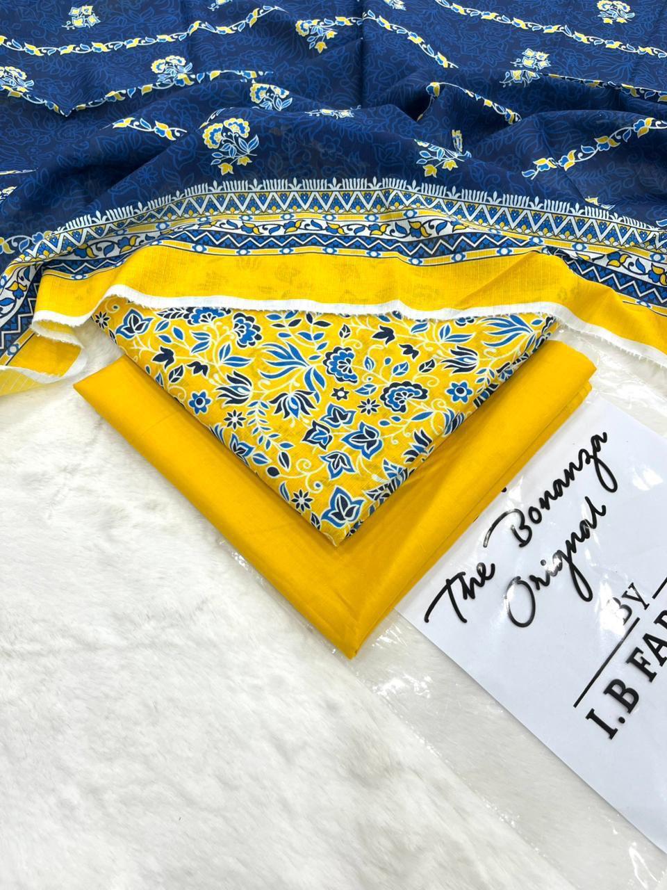 ib print blue & yellow floral lawn suit for women – premium unstitched summer dress with printed dupattaIB Print Blue & Yellow Floral Lawn Suit for Women – Premium Unstitched Summer Dress with Printed Dupatta