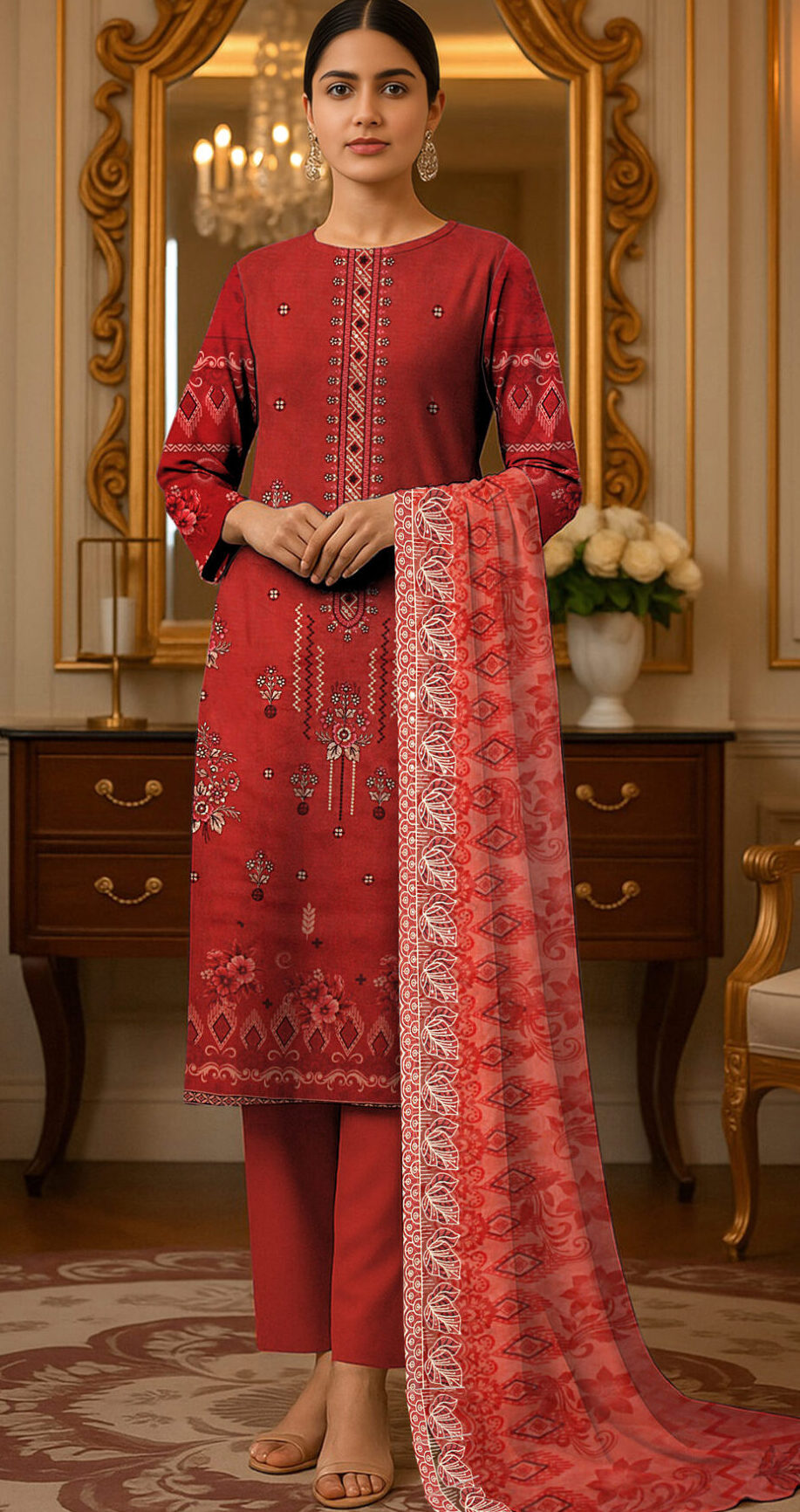 Agar aap ek aisa outfit dhoond rahi hain jo classy bhi ho aur comfortable bhi, to HT brand ka yeh red suit aap ke wardrobe ke liye ek perfect choice hai jo har mauqe par aap ko stylish aur confident feel karay ga.