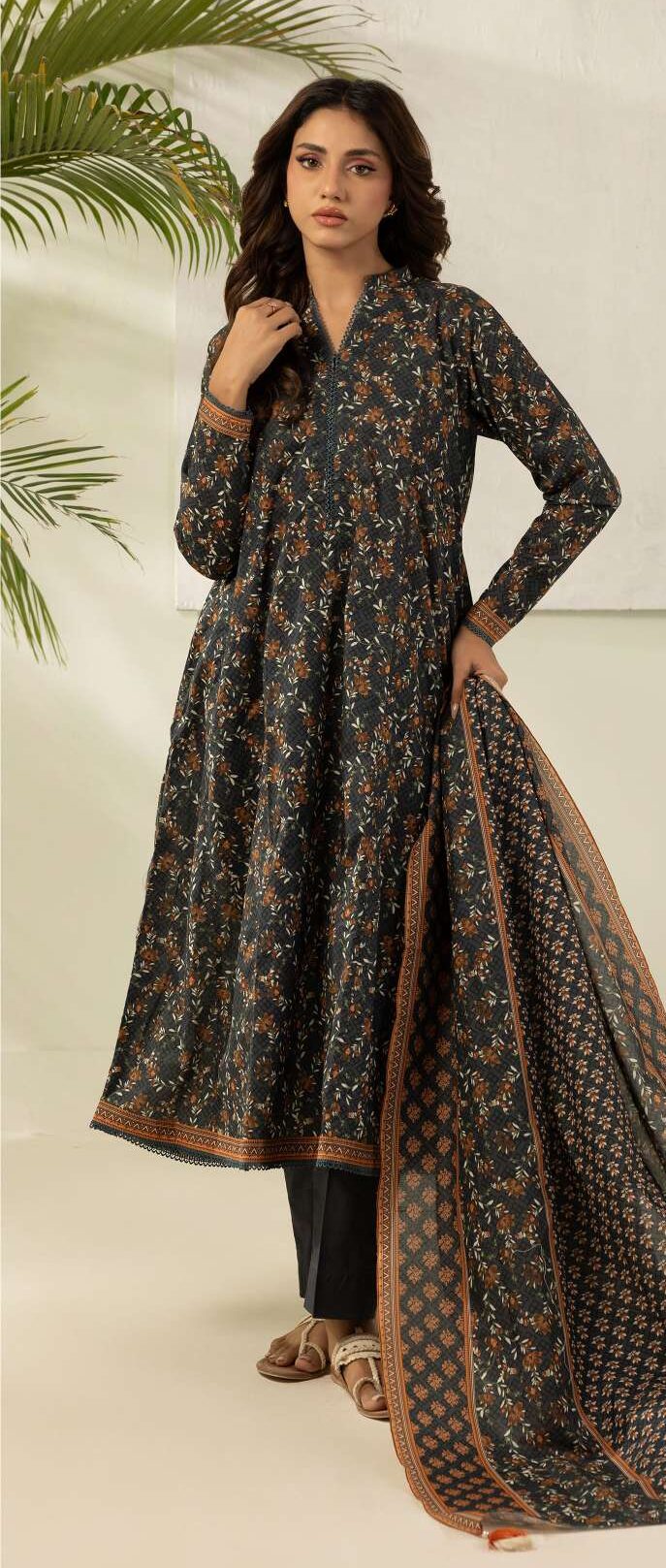 ZELLBURY ka yeh khoobsurat black floral suit un khawateen ke liye perfect choice hai jo elegance aur comfort dono ko pasand karti hain. Is outfit mein digital printed lawn shirt hai jo lightweight aur breathable fabric par tayar ki gayi hai, jo garmiyon ke liye ideal hai. Shirt par delicate floral patterns aur subtle earthy tones ka combination isay sophisticated aur timeless look deta hai.